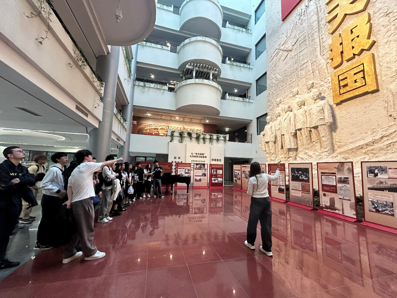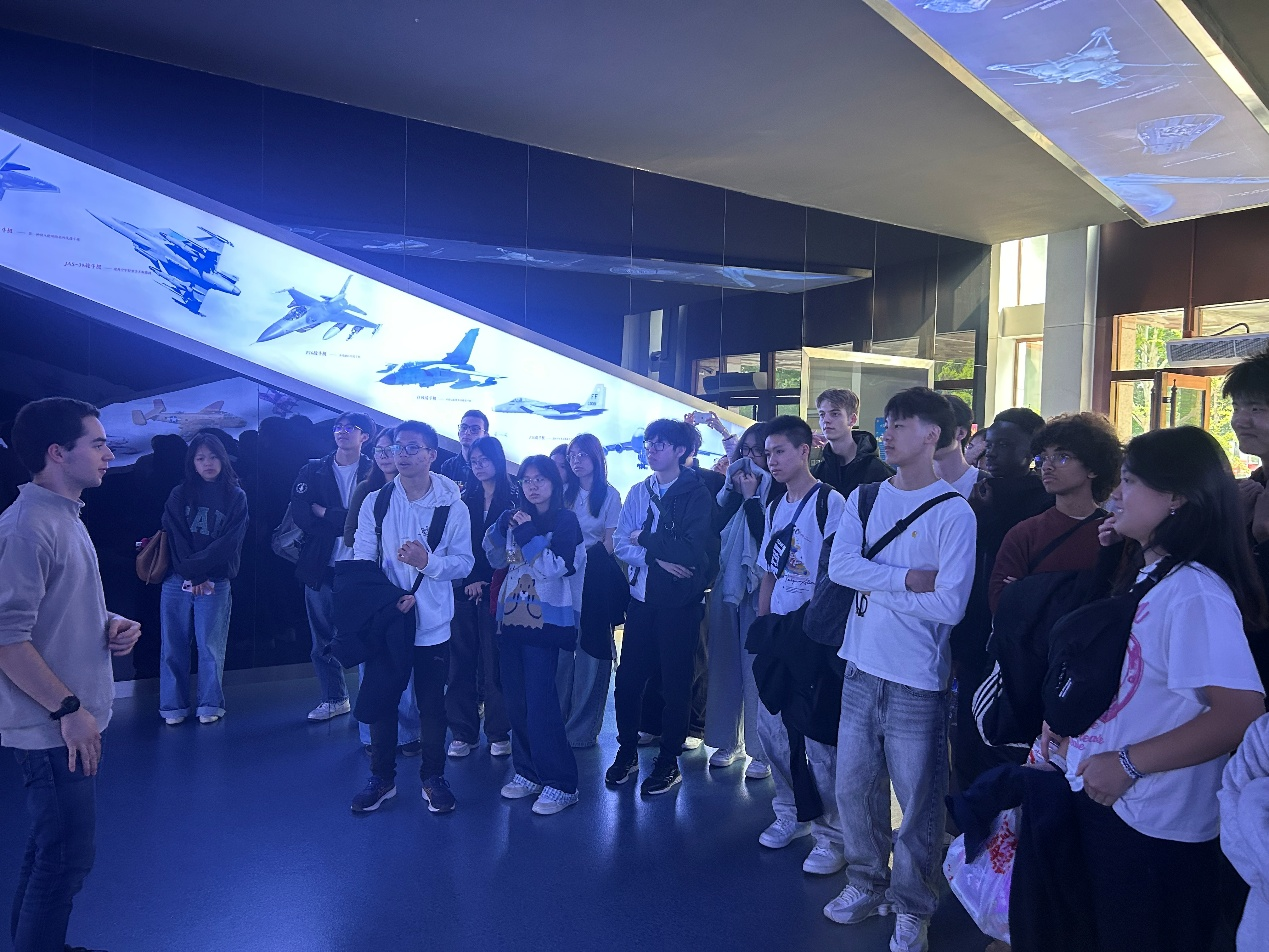 随后,学生团体参观了航空航天博物馆与校史馆。在航空航天博物馆,现场由法国留学生Tristan担任讲解,他为来访高中生详细介绍了“长空逐梦”“银鹰巡空”“空天走廊”“神舟问天”四个展区。通过与真实飞机与发动机等飞机结构的近距离接触,同学们进一步了解了人类航空航天进步历程,也直观感受到了中国航空航天事业的蓬勃发展。